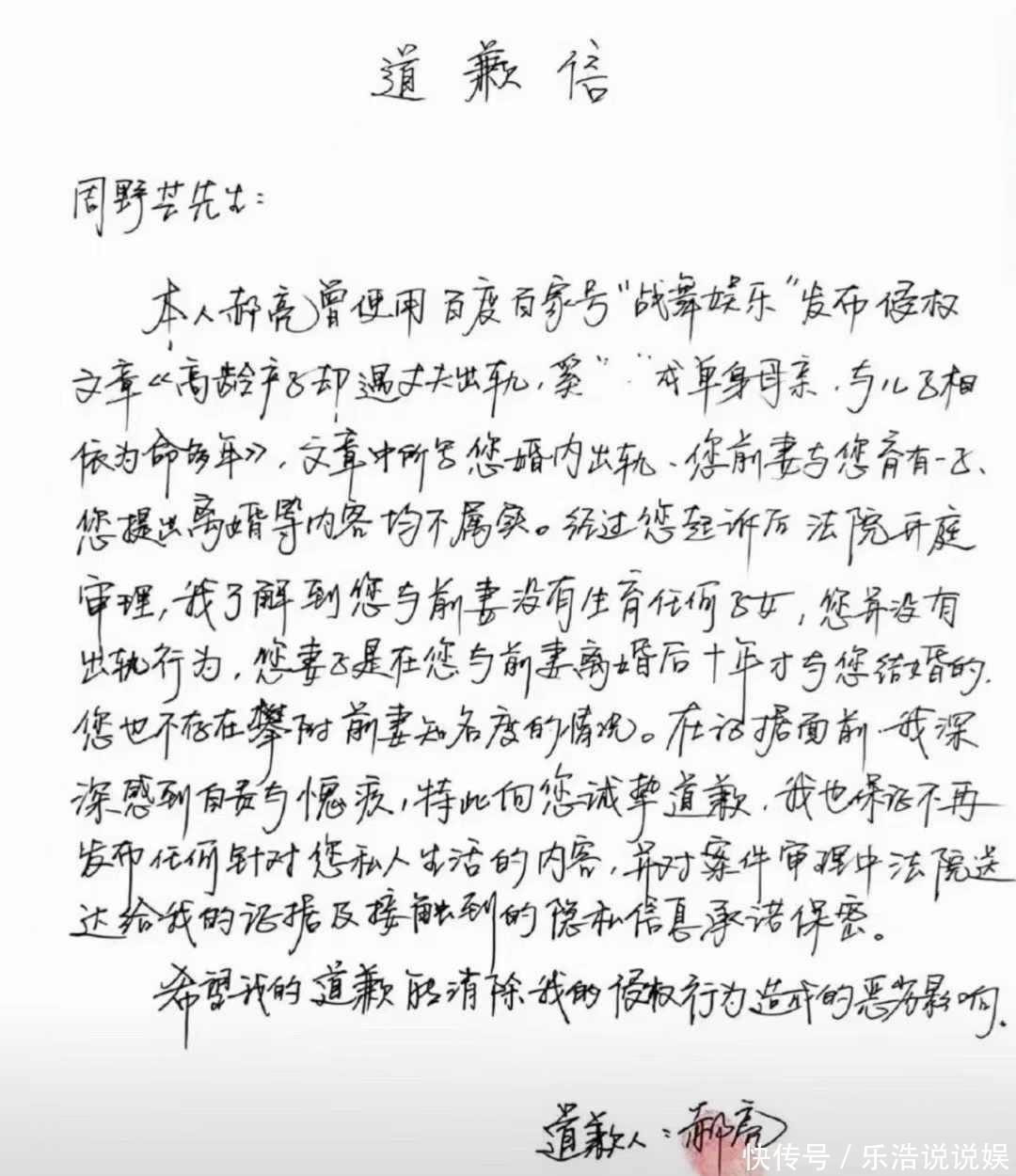 事情是这样的,2023年有个自媒体作者发文章说周野芒出轨,抛下妻子和孩子,还说两人有个儿子,周野芒没辩解,直接去法院告了,最后赢了,法院判对方必须公开道歉,道歉信里清清楚楚写明,所谓出轨和生孩子的事全是编的,可这封道歉信一出来,大家又琢磨开了,奚美娟确实有个儿子,随她姓,可这孩子的爸爸到底是谁。