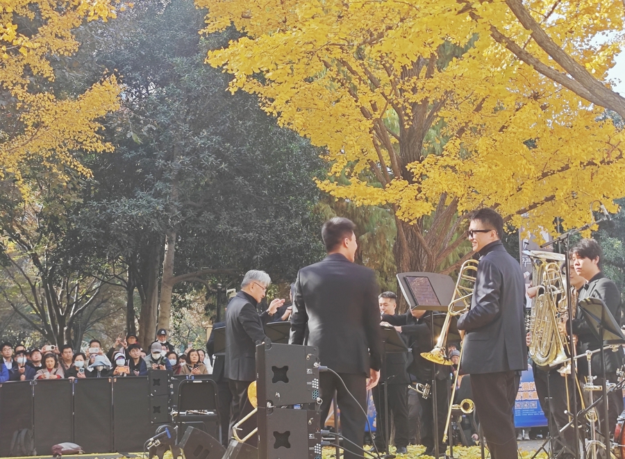 12月6日,凯迪拉克·上海音乐厅南广场西侧的银杏林再度被音乐点染。作为2025上海城市草坪音乐会“冬之乐”系列的核心场次,这场以“杏会金响”为主题的银杏音乐会,用11支铜管与打击乐的磅礴声浪,续写了与沪上市民跨越12载的季节约定。