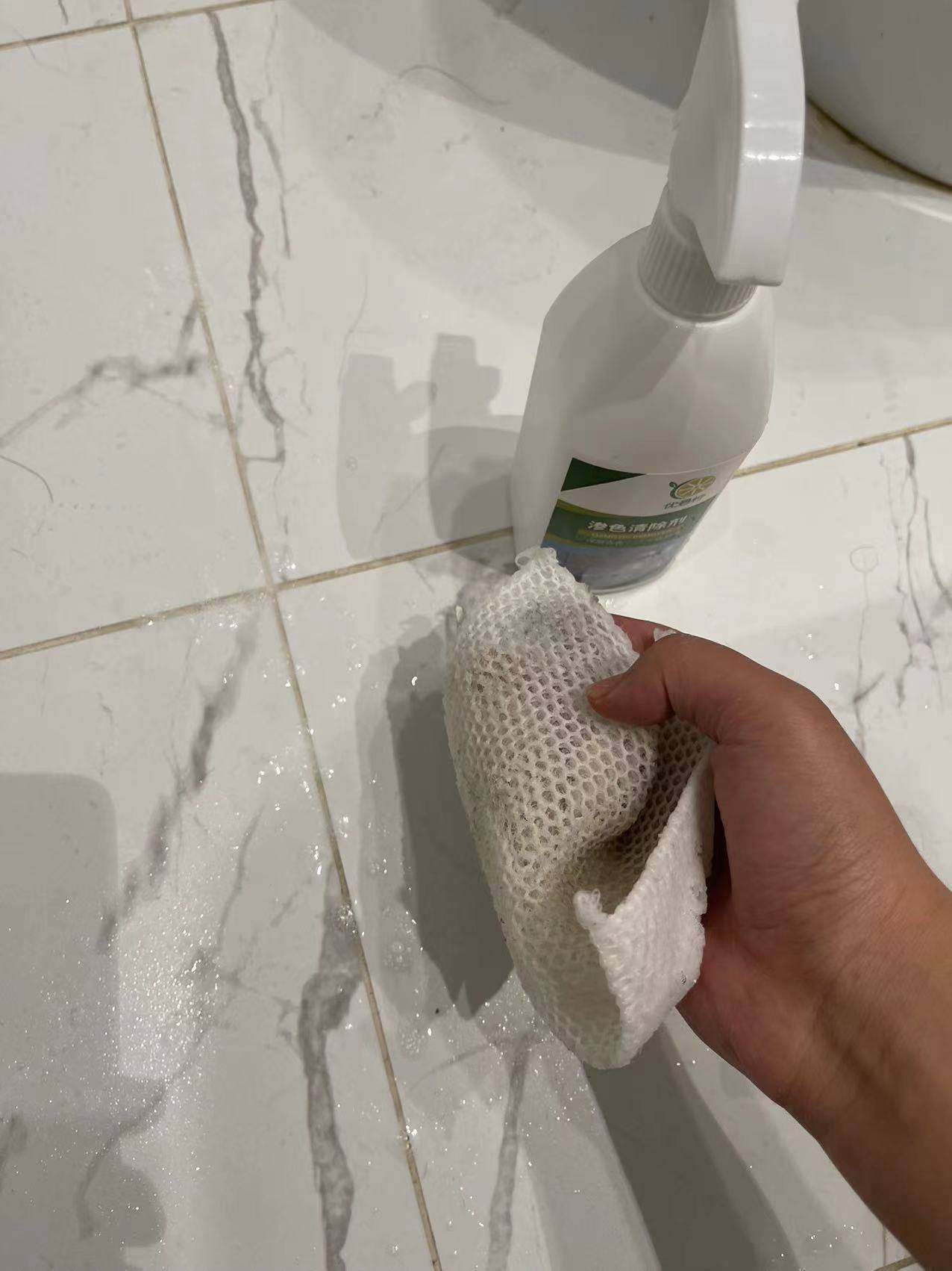 10、渗色清洁剂我家装修的时候,卫生间做了环氧彩砂,虽然贵,说是有,粘接强度好、不渗水等等优点,却也有一个明显缺点:不耐污。