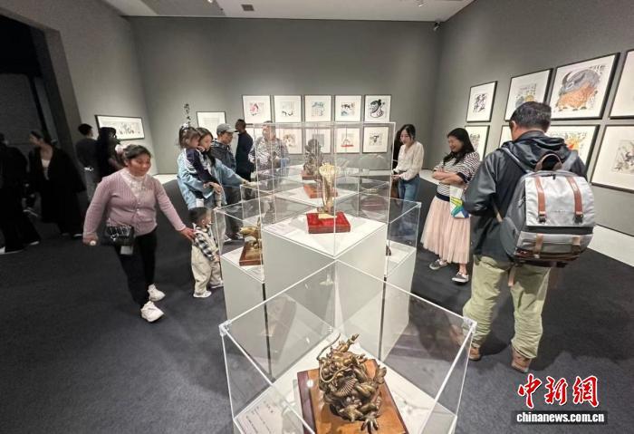 民众正在观看黄永玉的雕塑作品。程景伟 摄