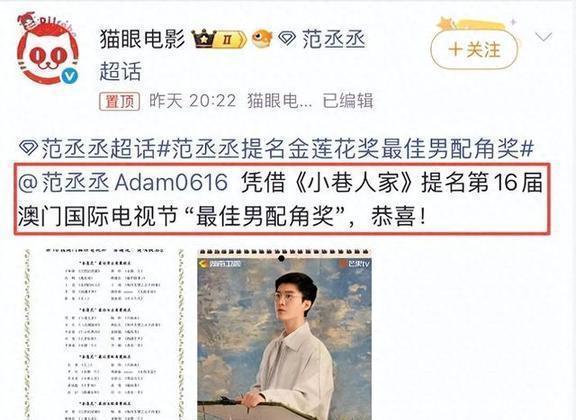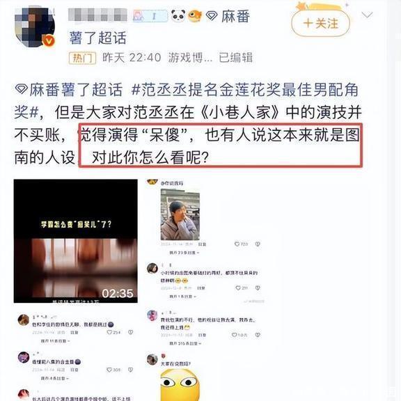 肖战和杨紫这些实力派入围大家都没啥话说,可一看到最佳男配角提名里有范丞丞,网友们都傻眼了——就他在《小巷人家》里的那个“木头演技”。