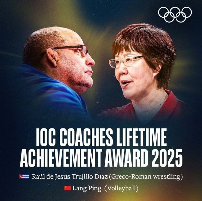 “祝贺郎平指导获得2025年国际奥委会教练终身成就奖!郎平曾于1995年-1998年和2013年-2021年担任中国女排主教练,带领球队获得2015年女排世界杯、2016年里约奥运会和2019年女排世界杯冠军,为中国排球做出了卓越贡献。”