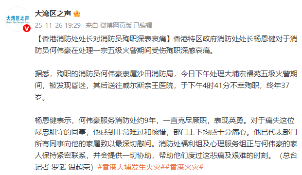 最安全的线上配资平台 香港消防处处长对消防员殉职深表哀痛