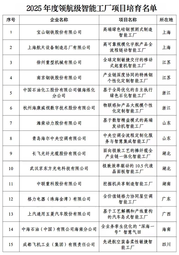 正规配资平台app 视频|涵盖装备制造等关键行业 我国首批15家领航级智能工厂名单公布