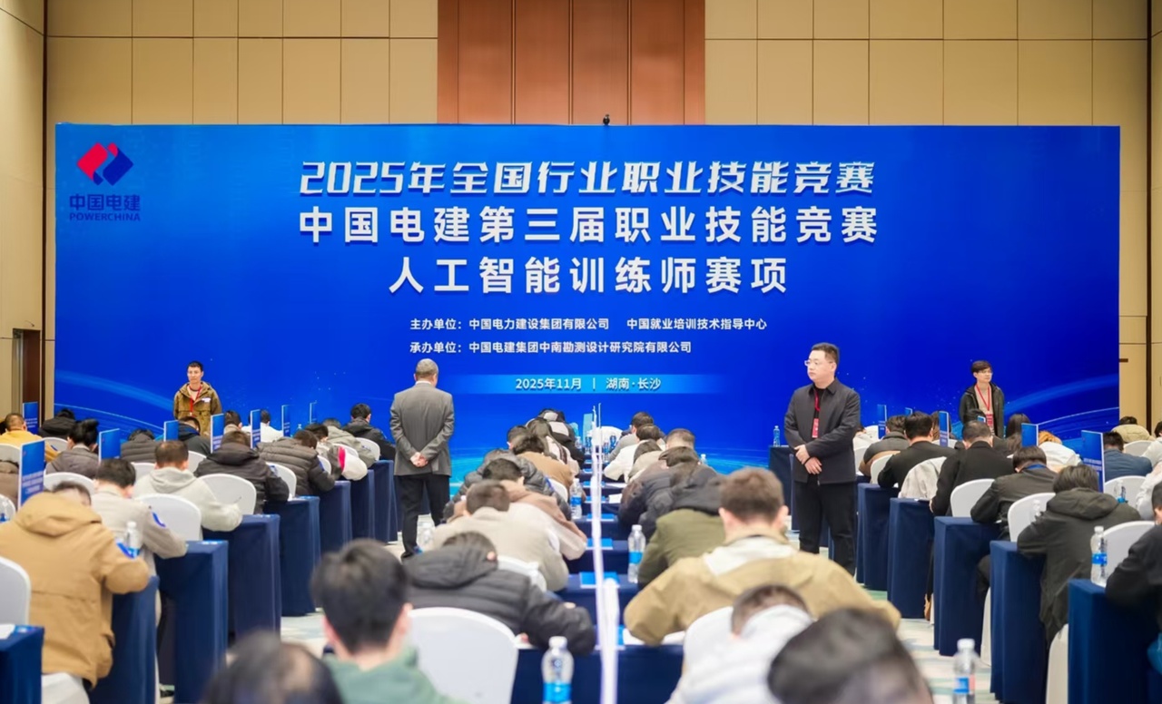 11月25日至28日,由人力资源和社会保障部批准,中国就业培训技术指导中心与中国电力建设集团有限公司联合主办,中国电建集团中南勘测设计研究院有限公司(以下简称中国电建中南院)承办的2025年全国行业职业技能竞赛——人工智能训练师赛项,在湖南长沙举办。该赛项首次亮相全国行业职业技能竞赛,吸引了来自全国34家企业的102名顶尖技能人才同台竞技。