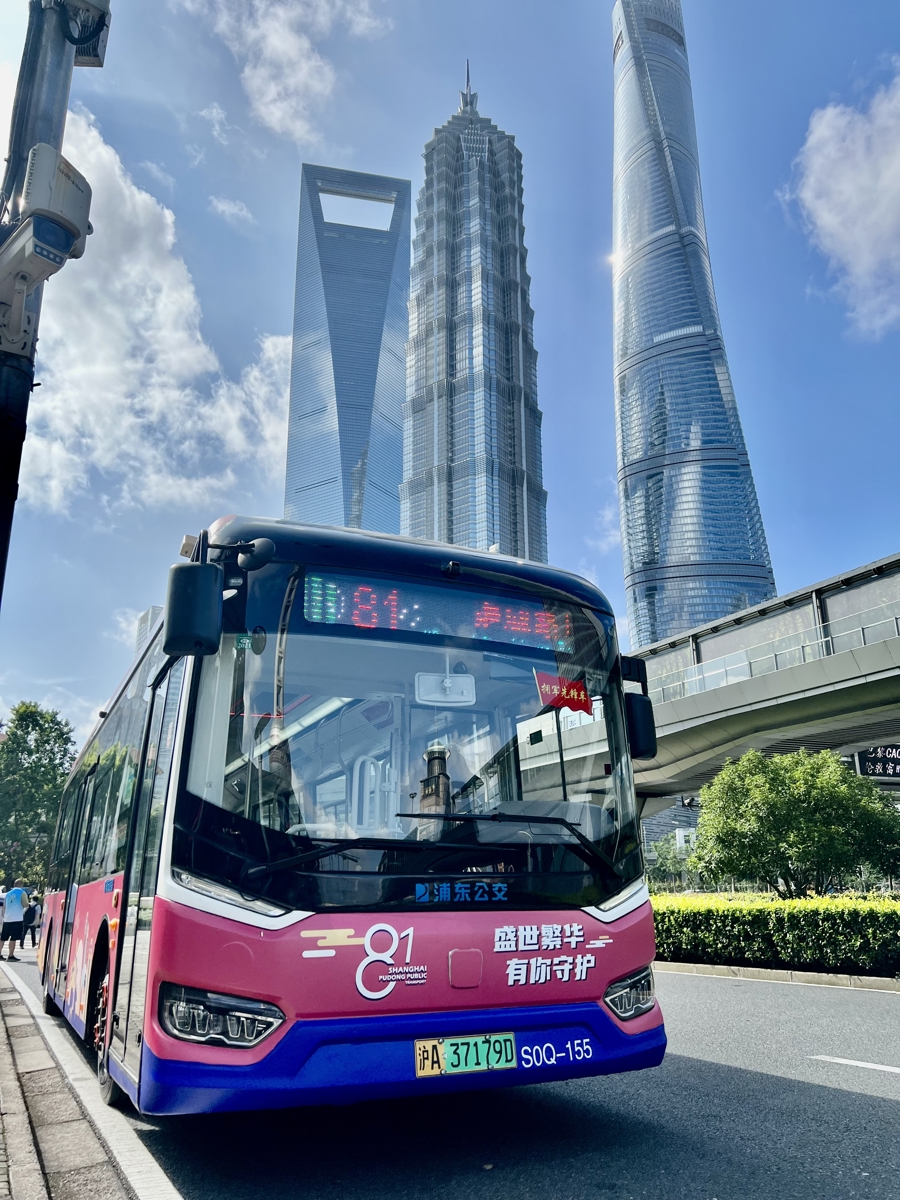 81路公交车的新能源车型从陆家嘴站驶出。(受访者供图)