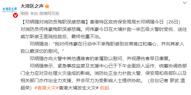 最安全的线上配资平台 邓炳强对消防员殉职深感悲痛