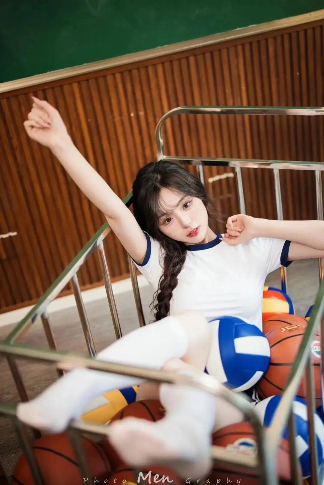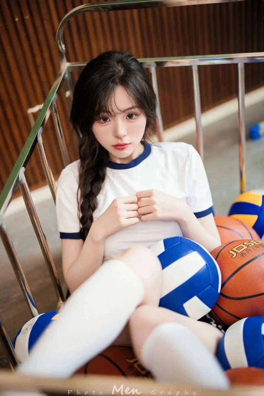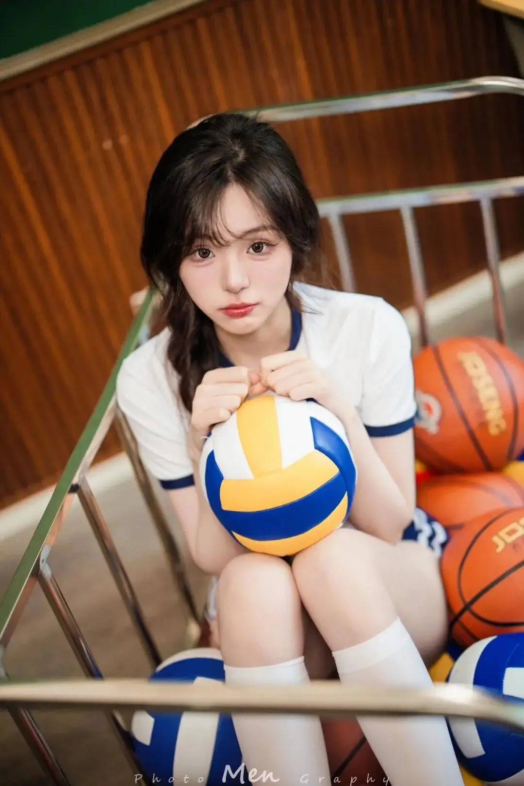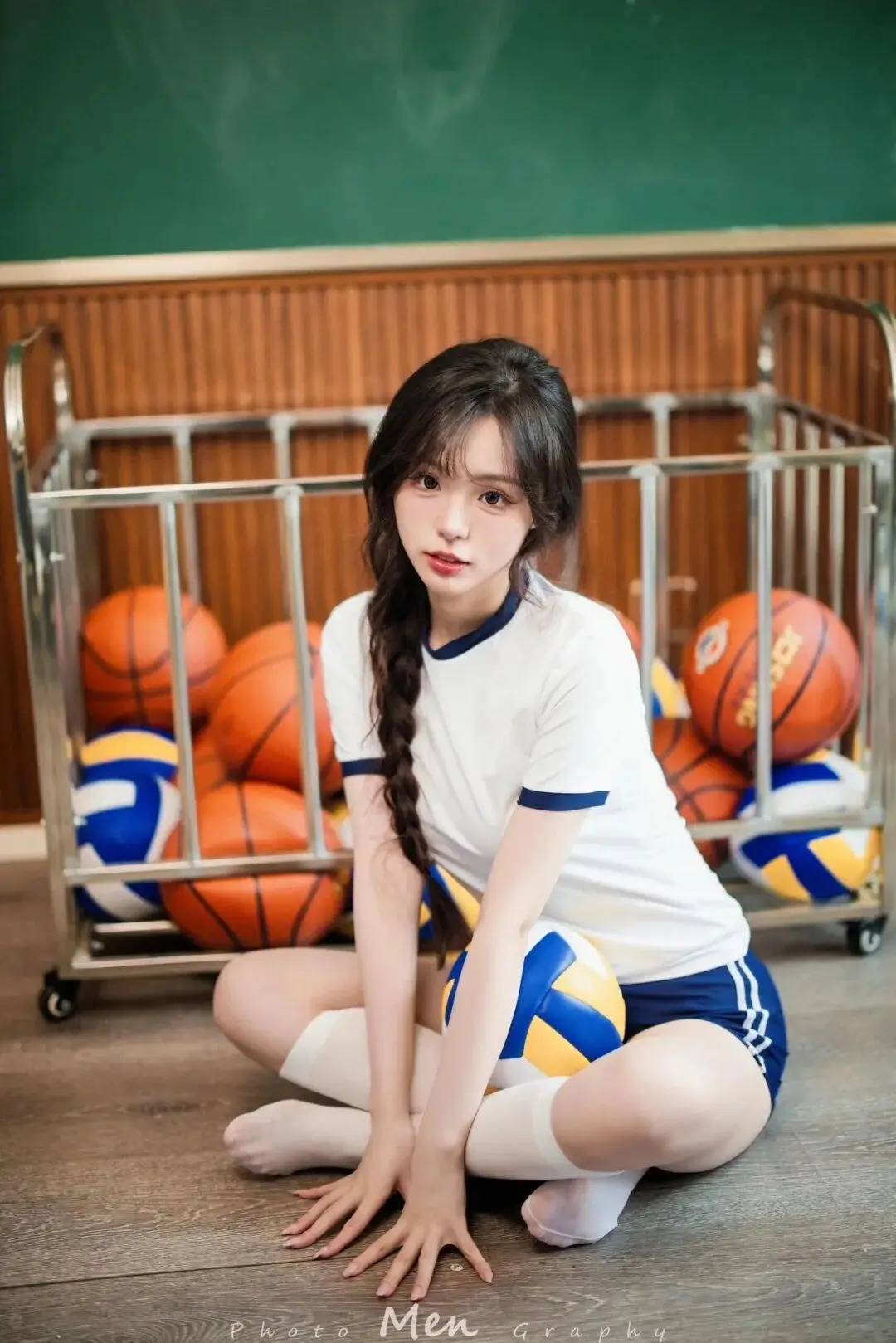 人物怀抱排球,姿态松弛地坐于地面,在运动风场景里把活力与柔美融合得恰到好处。这种“道具互动+肢体慵懒感”的搭配,既让动作充满运动系少女的元气,又靠姿态的设计感跳出单调摆拍,随手一拍就是运动风画报里的女主画面,普通场地都能拍出满满活力质感~