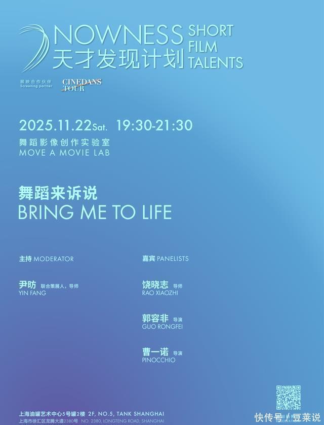 扫描二维码进行活动预约 1/预约场次无次数限制,请谨慎预约,现场凭预约二维码核销入场; 2/场内无固定座位,且座位数量有限,如行程有变,请提前取消已预约的场次; 3/为保证参与体验,如有两场及以上未核销记录,组委会将有权取消后续场次的入场资格; 4/活动前15分钟开放入场,请勿迟到; 5/迟到的观众需稍作等待,根据工作人员指引再入场; 6/已预约观众优先入场,因预约已满导致无法预约的观众可在活动现场排队等候,如场内有剩余座位,现场工作人员将安排引导进入; 7/观众选择荣誉投票环节将在线下进行,准时入场观众才可参与; 8/如活动有临时调整,以现场工作人员安排为准; *2025天才发现计划短片展NOWNESSSHORTFILMTALENTS由中国电影导演协会、广州超媒影业有限公司上海分公司主办,聚焦华语青年短片创作,致力于推动电影叙事创新、影像实验和审美表达,旨在为中国电影市场寻找富有创新精神的年轻导演,助推他们制作面向未来的电影作品。